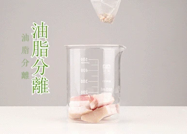 把肉塊放在水中,再將脂流茶倒進杯中浸泡
