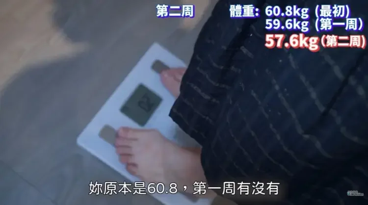 還未開始喝的時候體重是60.8KG,體脂肪33.7%