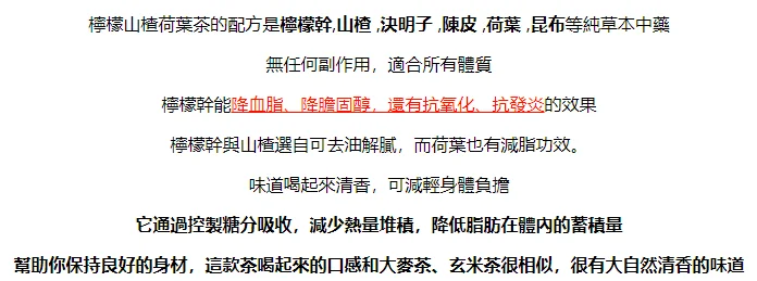 但是這款【檸檬山楂荷葉脂流茶】富含18種中草藥